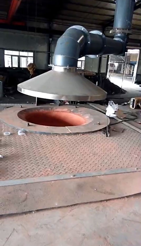 電爐除塵器裝置系統(tǒng)為:將來自工業(yè)硅生產(chǎn)電爐的煙氣,在離心式主風(fēng)機(jī)的抽吸作用下,煙氣由半封閉式電爐內(nèi)引出,沿著煙道首先進(jìn)入旋風(fēng)除塵器。把粗粒、火星分離出來,使其沉降于灰斗至卸料器排出。在有旋風(fēng)除塵器的出口排出,超細(xì)粉塵及含塵氣體進(jìn)入一個(gè)熱交換器,風(fēng)冷降低煙氣溫度,然后其它塵粒隨氣流上升進(jìn)入布袋除塵器各個(gè)袋室。經(jīng)濾袋過濾后,粉塵被阻留在濾袋外面,凈化后的氣體由濾袋進(jìn)入箱體,再通過袋口和上箱體(凈氣室)出風(fēng)口進(jìn)入離心式主風(fēng)機(jī)在排入煙囪至大氣。灰斗中的粉塵定時(shí)或連續(xù)由卸灰系統(tǒng)排出。